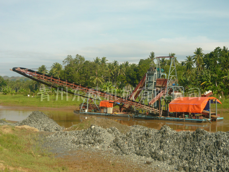 淘金船是一種集采礦作業、選礦作業為一體的水上聯合工廠,是一種砂金、鐵粉、錫礦、鎢礦等重金屬開采設備,它包括鏈斗挖掘系統、選礦及供水系統、廢礦及尾礦排棄系統、甲板機械、船體、上部鋼構、供電等幾個基本系統。